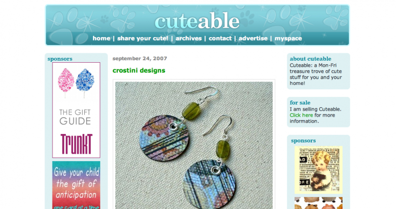 Sion Lee's* popular design blog, Cuteable, receives thousands of visitors each month, all searching for the cutest handmade items by the coolest independent designers. CLICK HERE to read her rosy review on the September 2007 launch of CROSTINI designs.