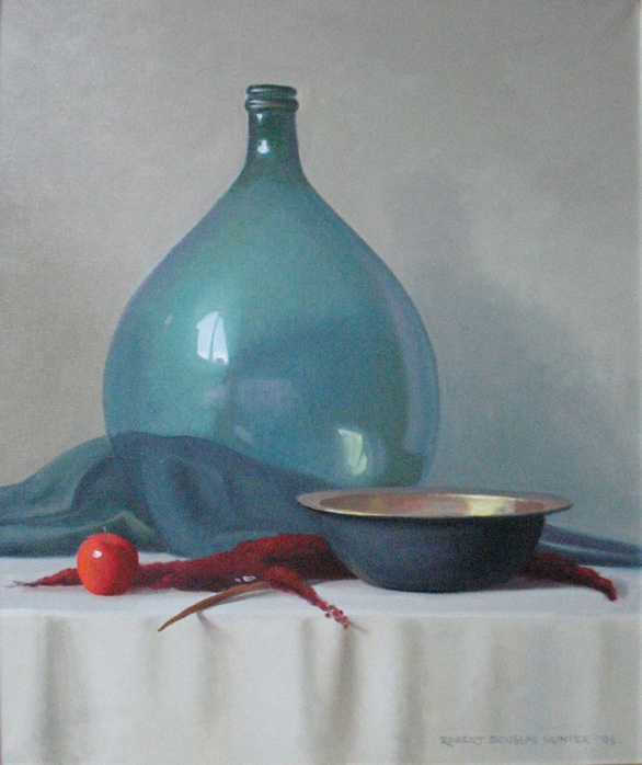 Image: Robert Douglas Hunter, "Arrangement with a Demijohn No. 3", oil.