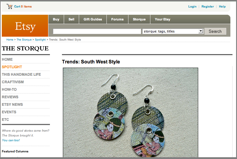 CLICK HERE to read the October 2nd, 2007 Spotlight :: Trends - South West Style column by Jennifer Perkins (of Naughty Secretary Club) featuring Crostini Designs Rain Maker 2-Tier Drop Earrings.
